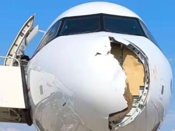 El incidente ocurrió minutos después del despegue rumbo a París. La nave sufrió daños visibles en la parte delantera y en un motor, pero no hubo heridos.